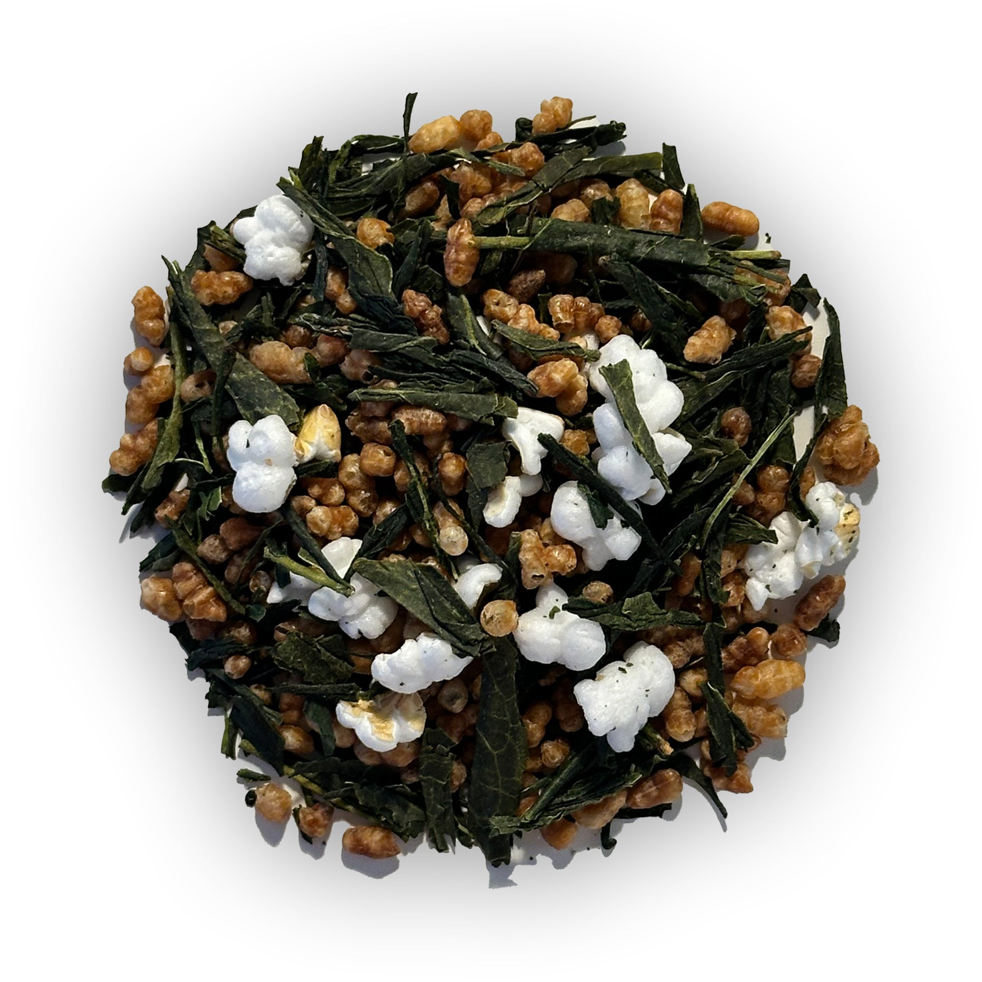 Száraz levelek: A leveleknek élénk zöld színe van, ami a jó minőségű Bancha teára jellemző, tűszerű formájuk van, keverve vannak puffasztott rizzsel, ami a tea kb 50%-át adja